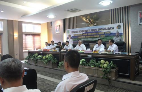Rapat yang membahas upaya menyukseskan program Pendaftaran Tanah Sistematis Lengkap (PTSL) itu, dihadiri Bupati H.Acep Purnama, SH., MH, Wakil Bupati Kuningan, H.M Ridho Suganda, SH., M.Si, Kepala Kantor Pertanahan Kab.Kuningan, Sismanto, A.Ptnh, M.Si